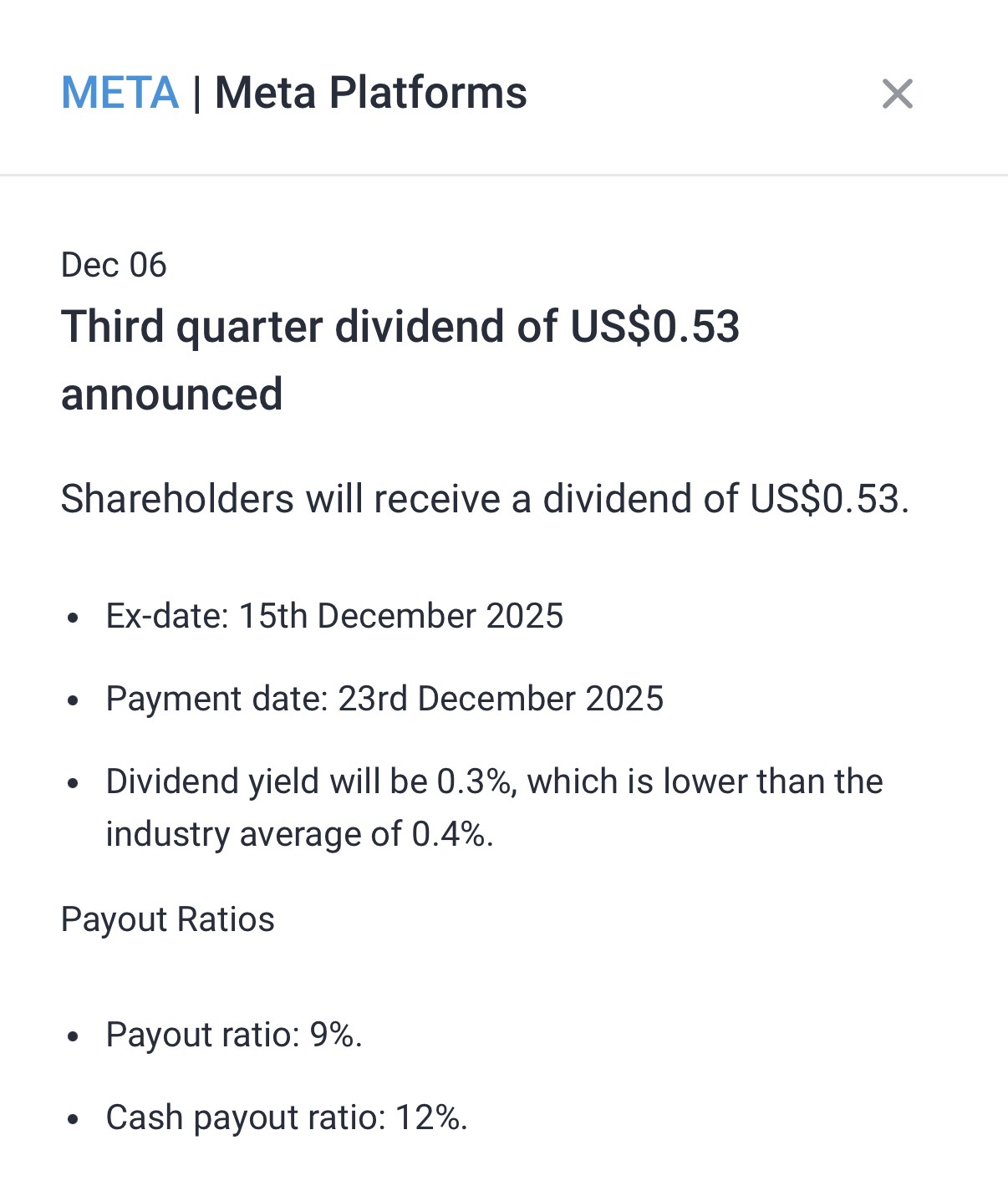 Meta paying dividends