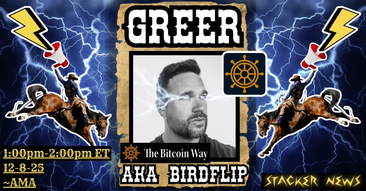 AMA coming up tomorrow (Monday): Greer AKA @birdflip, CMO of The Bitcoin Way! Swing by to ask your questions about The Bitcoin Way, operating a bitcoin clothing store, or anything else that's on your mind! MARK CALENDAR 👇 https://calendar.google.com/calendar/event?action=TEMPLATE&tmeid=NHM1c29xYzMxb2RsZGo0cDBiZzE0bTVyNWUgYmVud2Vocm1hbkBt&tmsrc=benwehrman%40gmail.com