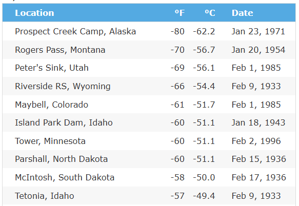 Alaska has too much moderating coastline. He needs to move Saskatoon.
