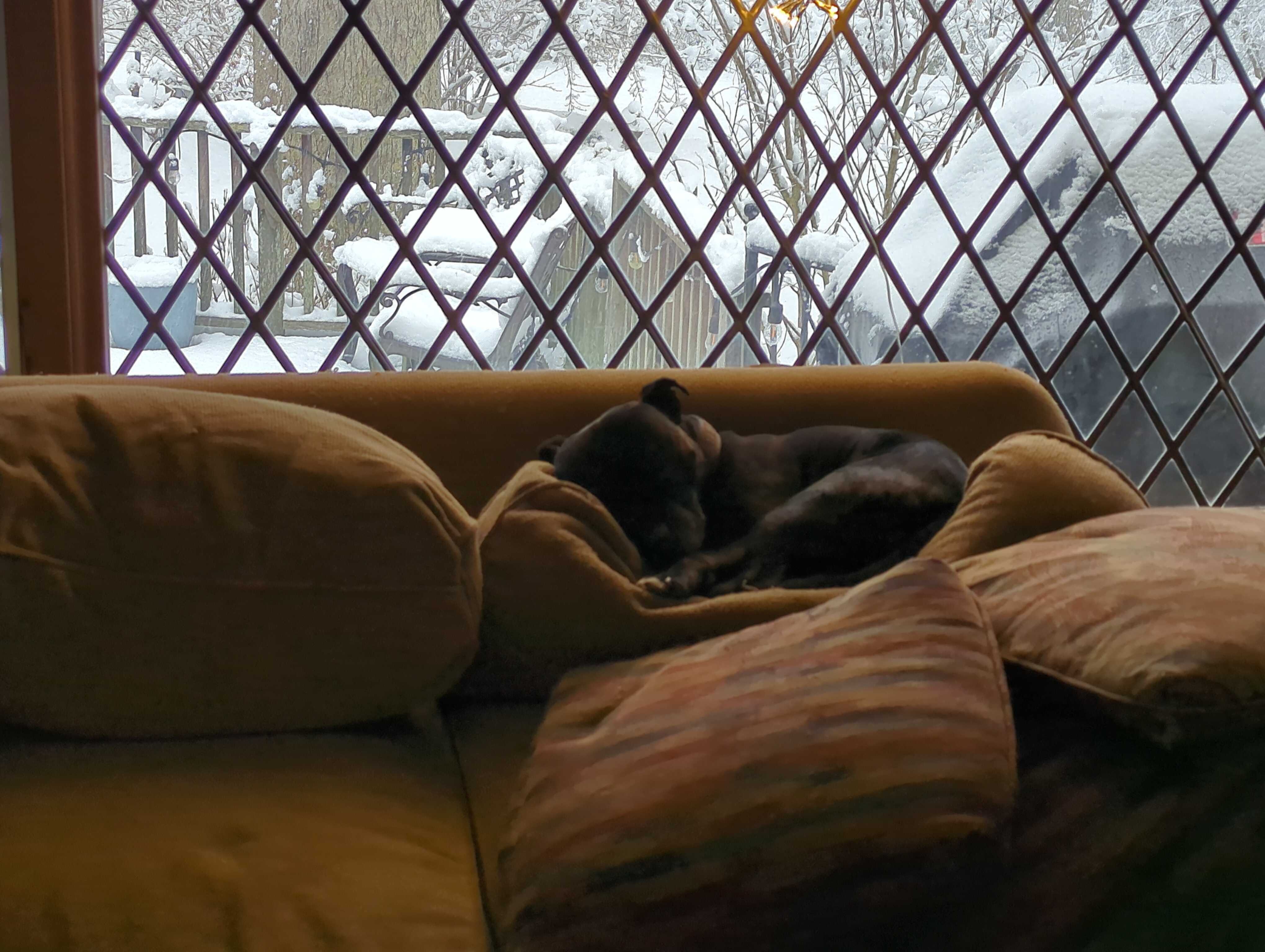 This will be a sitting by the fire day. I like walking in the snow more than my dogs do. They have grown soft with too much comfort.