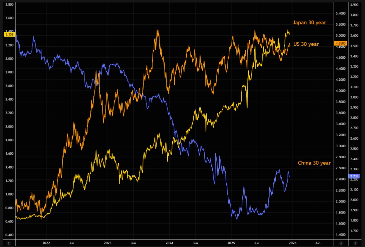 Long-term interest rates remain under pressure globally, including in economies with a disinflationary bias, such as China.