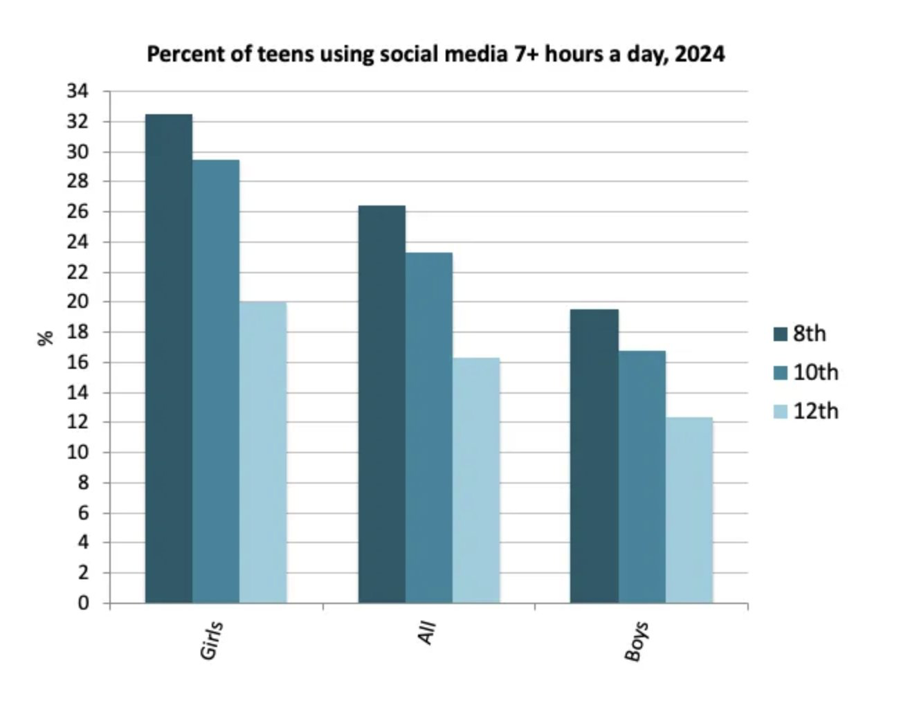 32% of 8th graders using social media for 7+ hrs a day is pretty wild.