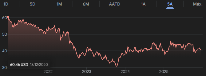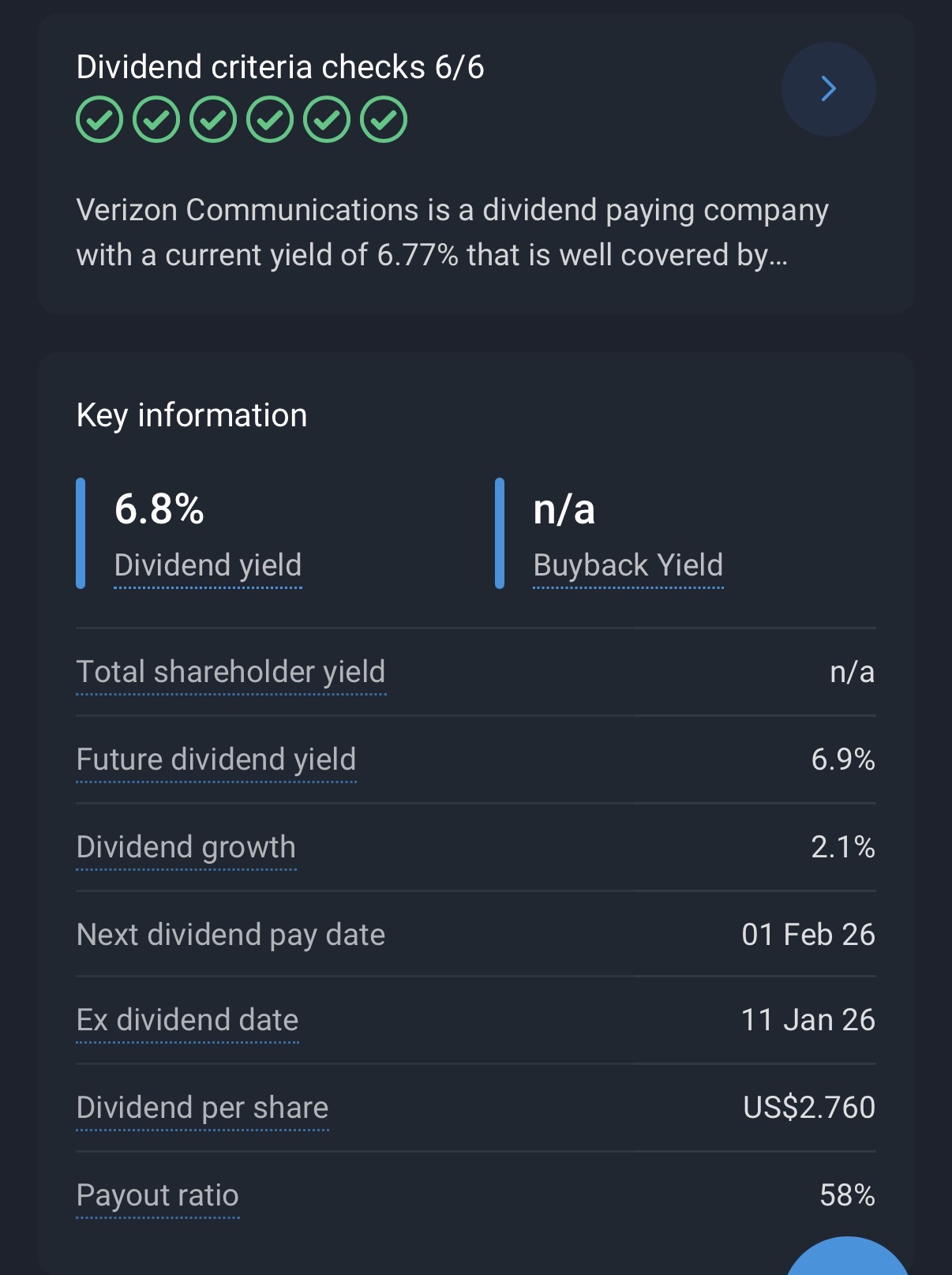 This stock used to by my bedrock for dividend payments with growth upside as they rolled out 5G. This was some years ago and that hasn’t really panned out the last 4 to 5 years. I am up 12% on this position. Considering the dividends the return is slightly higher.