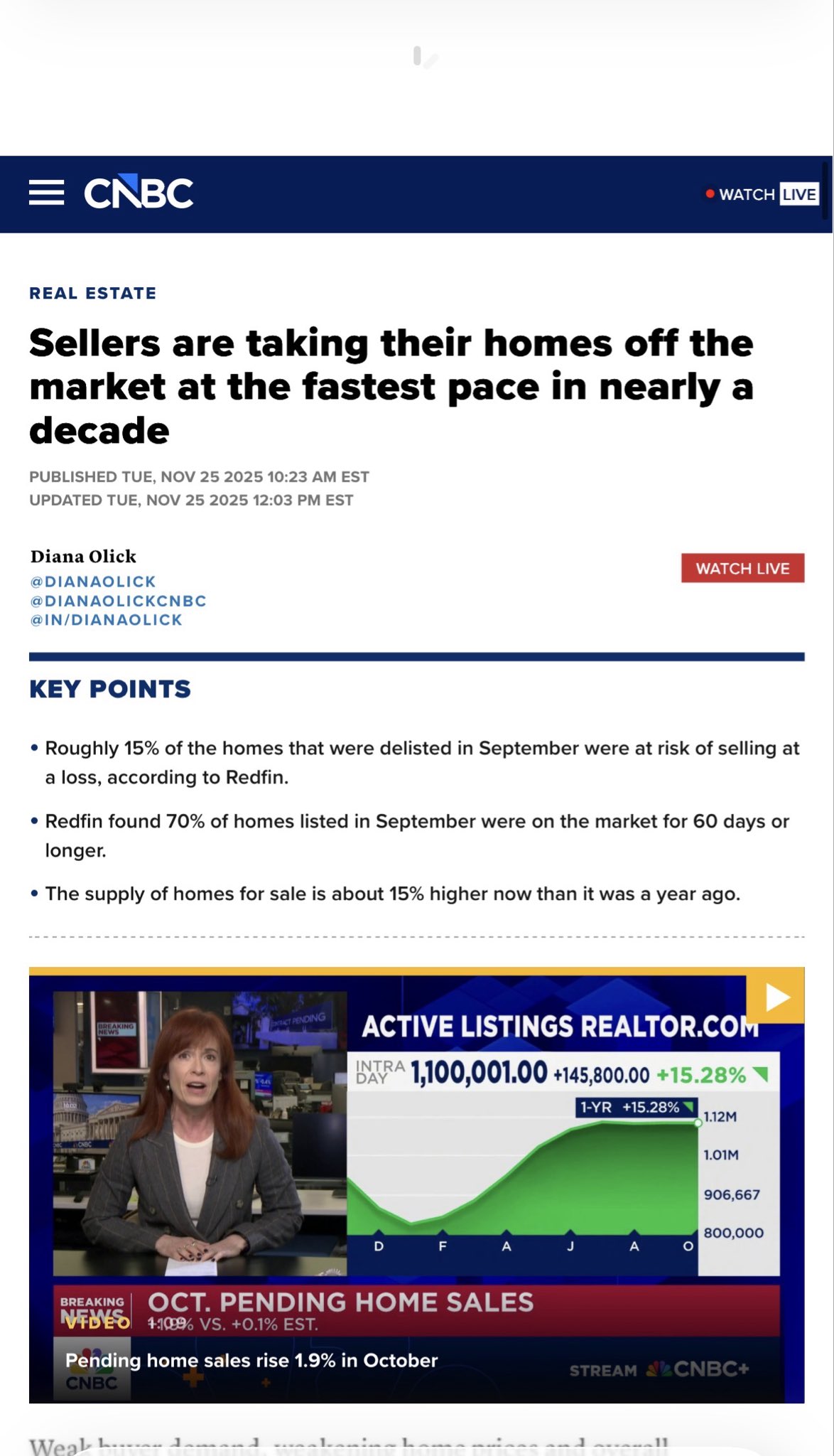 A growing share of sellers are pulling listings because homes are sitting longer, offers are softer, and cutting prices feels like locking in a loss. Redfin data shows nearly 70% of homes listed in September sat on the market for 60+ days, and roughly 15% of delistings were at risk of selling below purchase price, which helps explain why owners would rather wait than blink first.