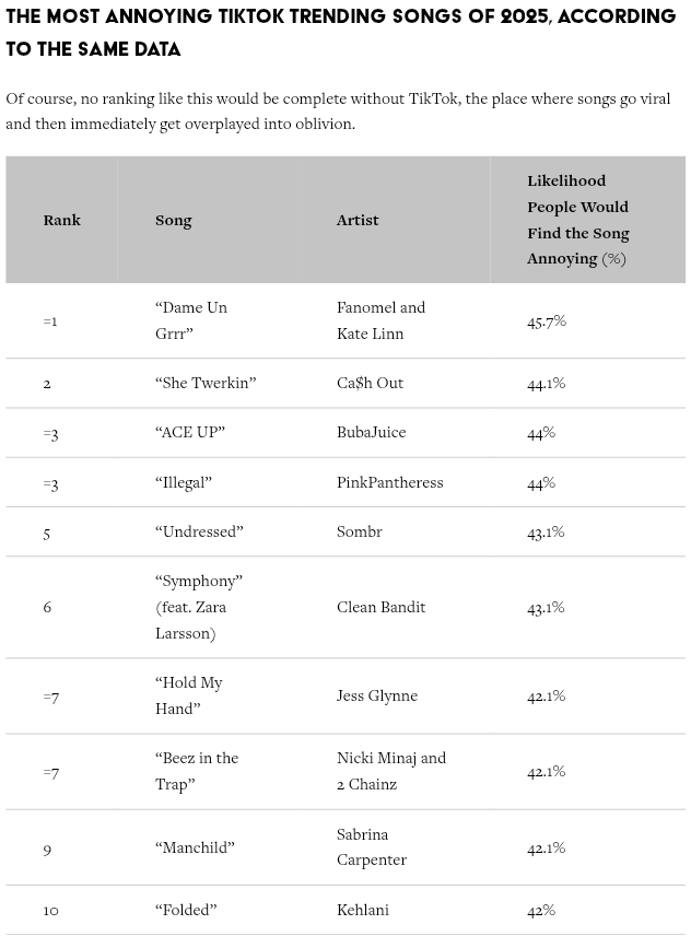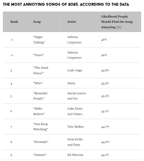 I don't know any of those songs, thankfully! Nor do I follow any of those artists.