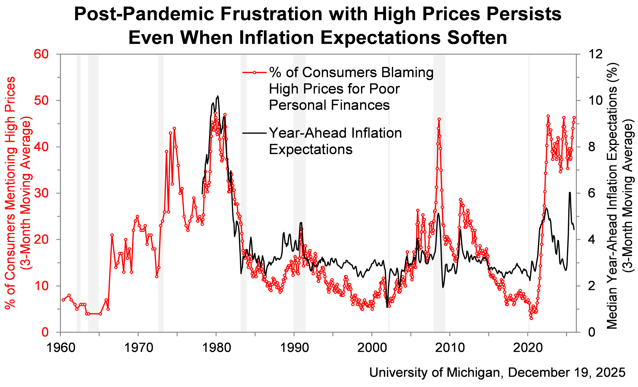 “Despite some signs of improvement to close out the year, sentiment remains nearly 30% below December 2024, as pocketbook issues continue to dominate consumer views of the economy,” Joanne Hsu, director of the survey, said in a statement.