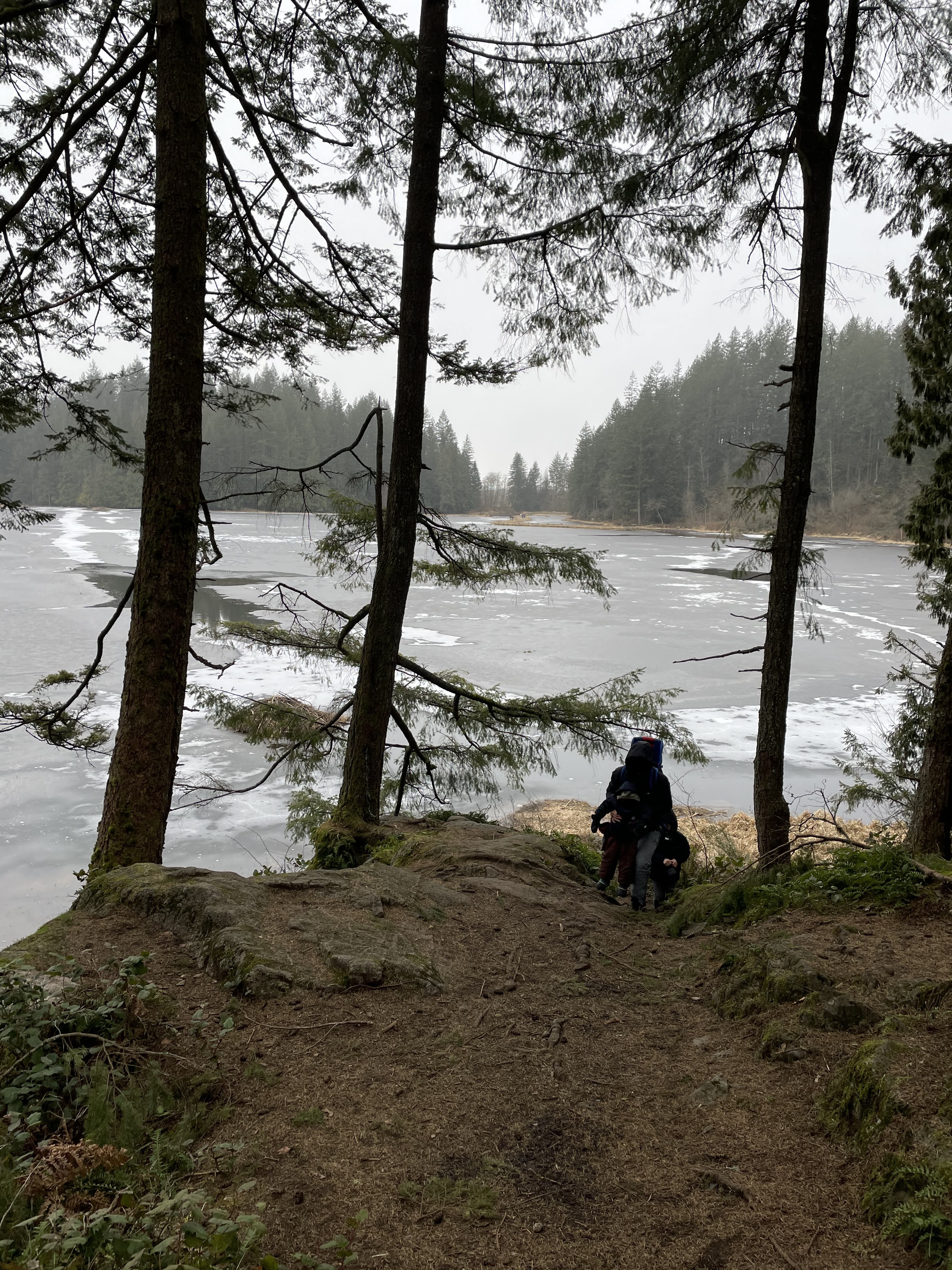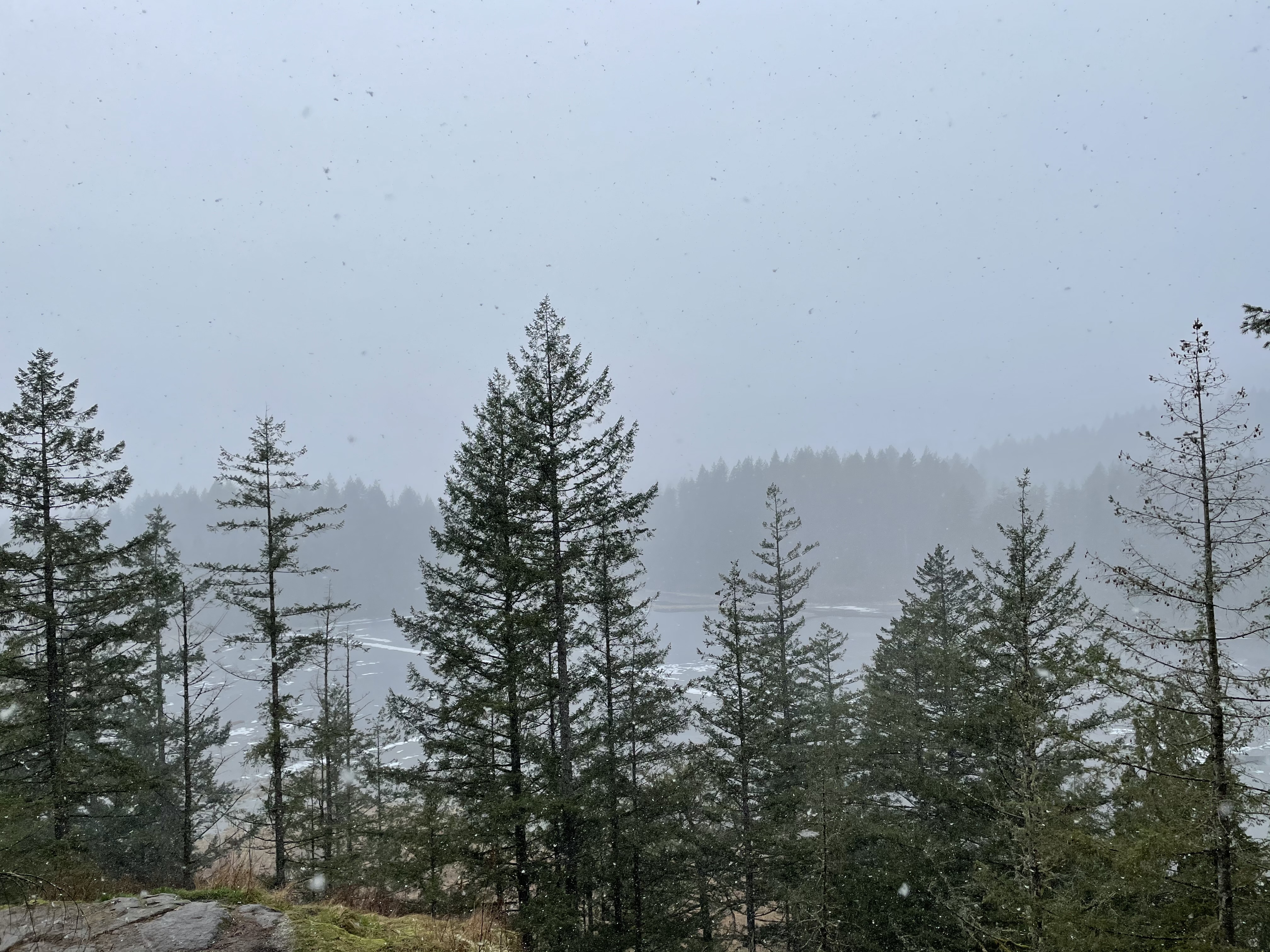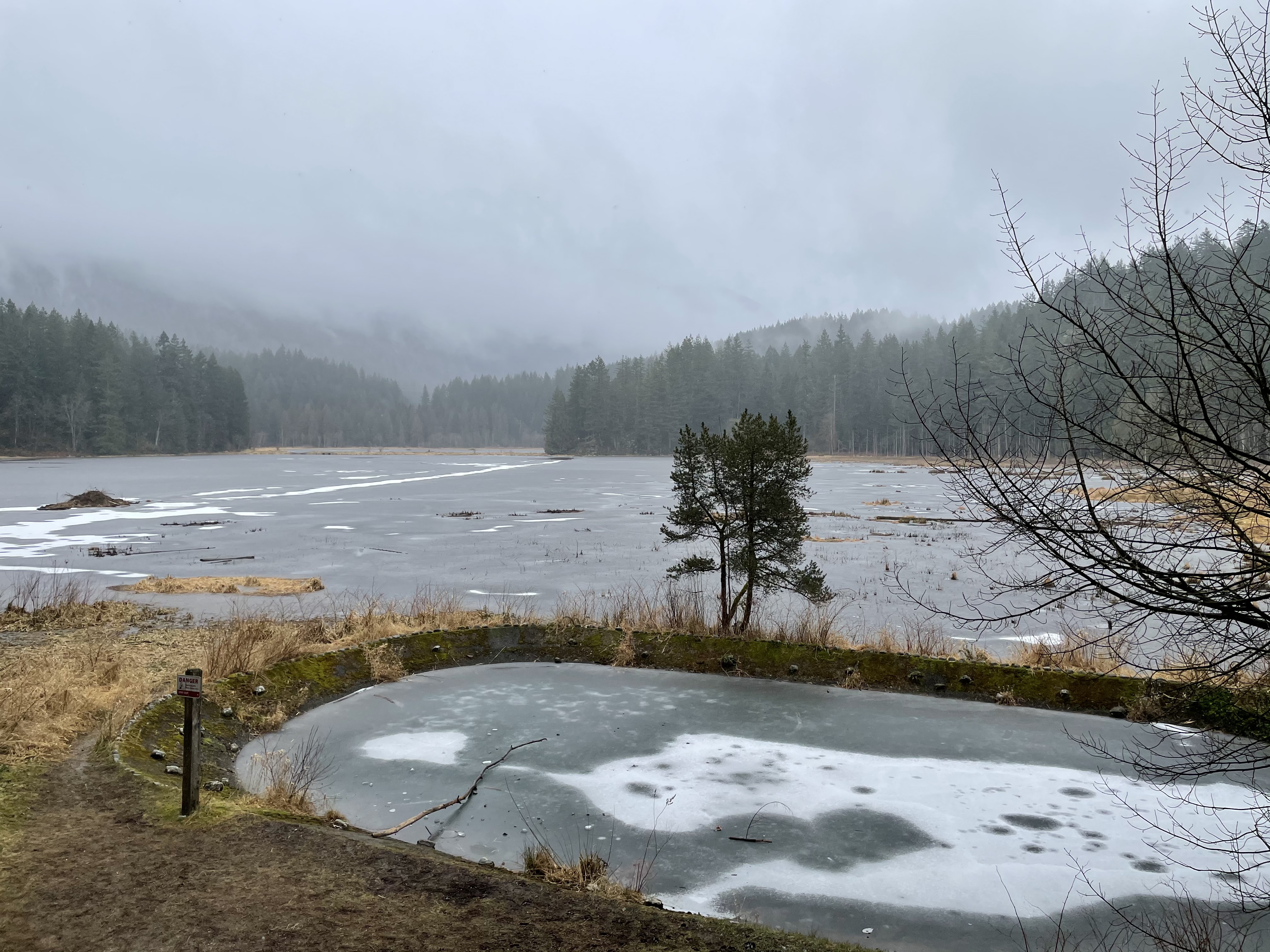I was very busy last Sunday, so I skipped writing last week's hiking post. However, we are back at it this week, and we are heading to Minnekhada Regional Park. Minnekhada Regional Park is a provincial park located near Coquitlam BC. It contains two marsh-lakes separated by a land bridge, and also a decent sized forest with trails leading to some lookouts at higher elevations. The two best viewpoints high up are Low Knoll and High Knoll. It is approximately 10km to traverse through all the trails in the park, but some points can be skipped to shorten the hike. The park is supposed to be teeming with wildlife because of the marsh, but we visited the park back in February, 2021 in late winter, so we did not see much wildlife. Coming from the parking lot, the trail starts on flat ground, and quickly leads to the land bridge that separates the Upper Marsh and the Lower Marsh. After crossing the land bridge, we enter the forest and start gaining elevation. We eventually reach the Low Knoll viewpoint to observe the view. Although there were quite a few trees obstructing the view at Low Knoll, we were still able to see the marsh and forest below us. We decided to skip hiking to High Knoll, because it was very cold and was also snowing quite heavily. We made our way back down from High Knoll through the forest. Continuing on trail, we eventually made our way around the southern shore of Lower Marsh, where the trail loops back to the trailhead.