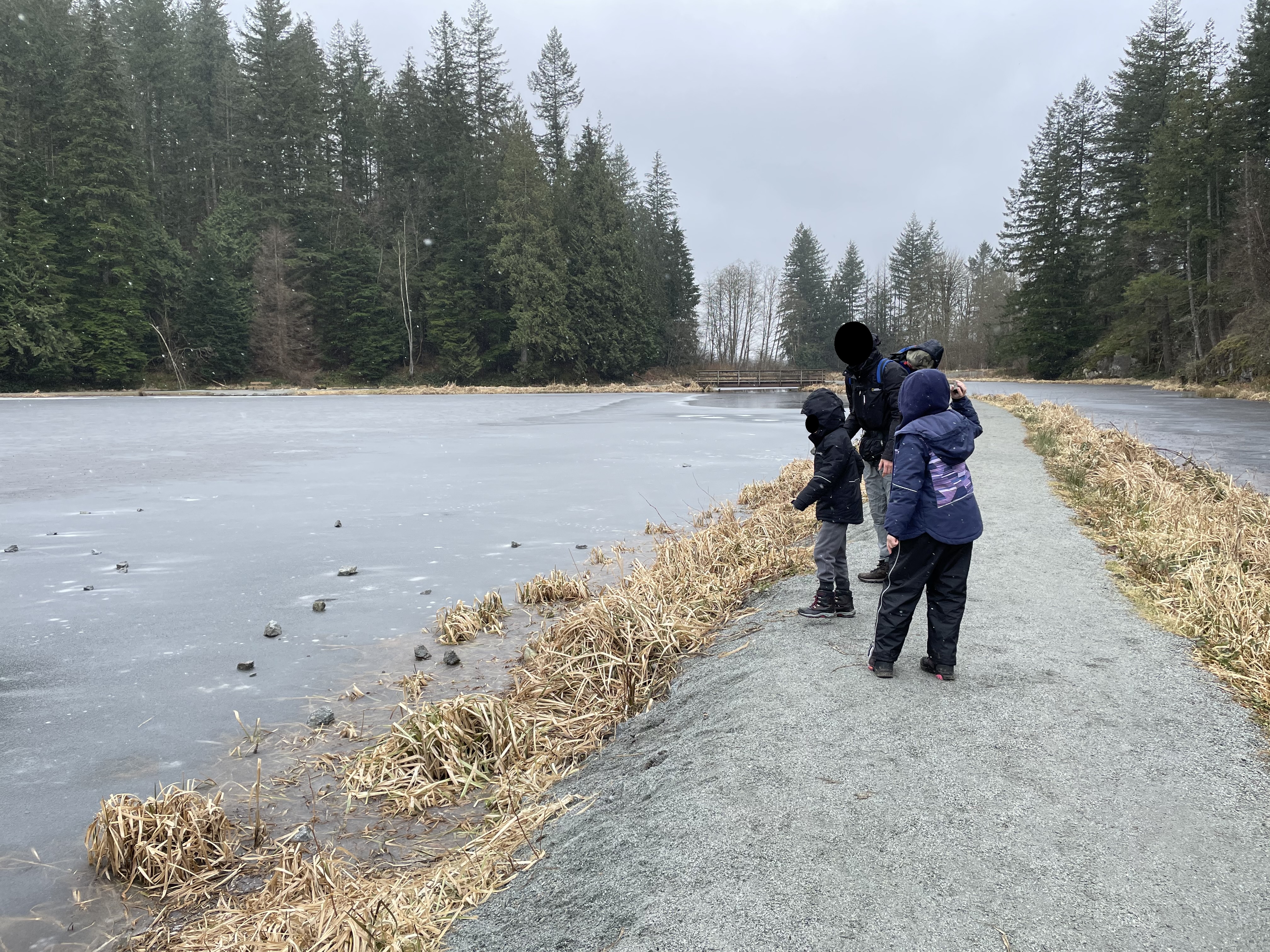 We were throwing rocks onto the ice to try to see if we can break the ice. Judging from the number of rocks already on the ice, it seems we were not the only ones with that idea.