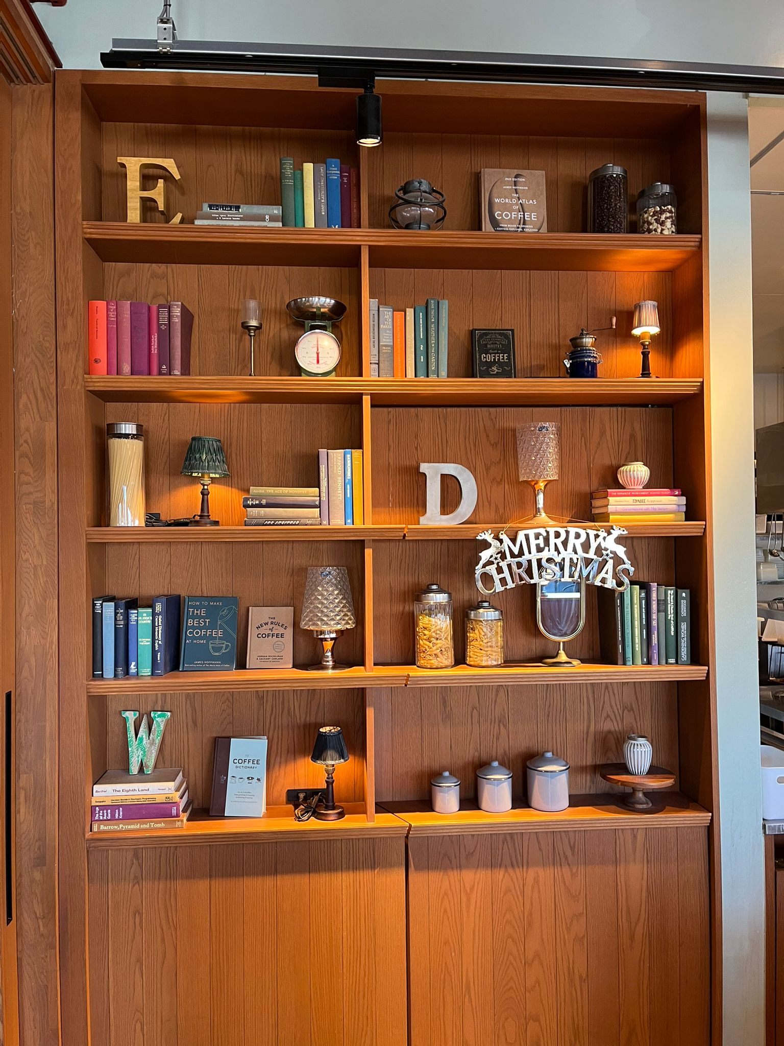 - those books on the shelf. THESE ARE ACTUAL BOOKS ON COFFEE. Yes, I checked. I am a book nerd. But seriously, only the Japanese will go to the trouble of sourcing authentic books to create the picturesque look they want.
