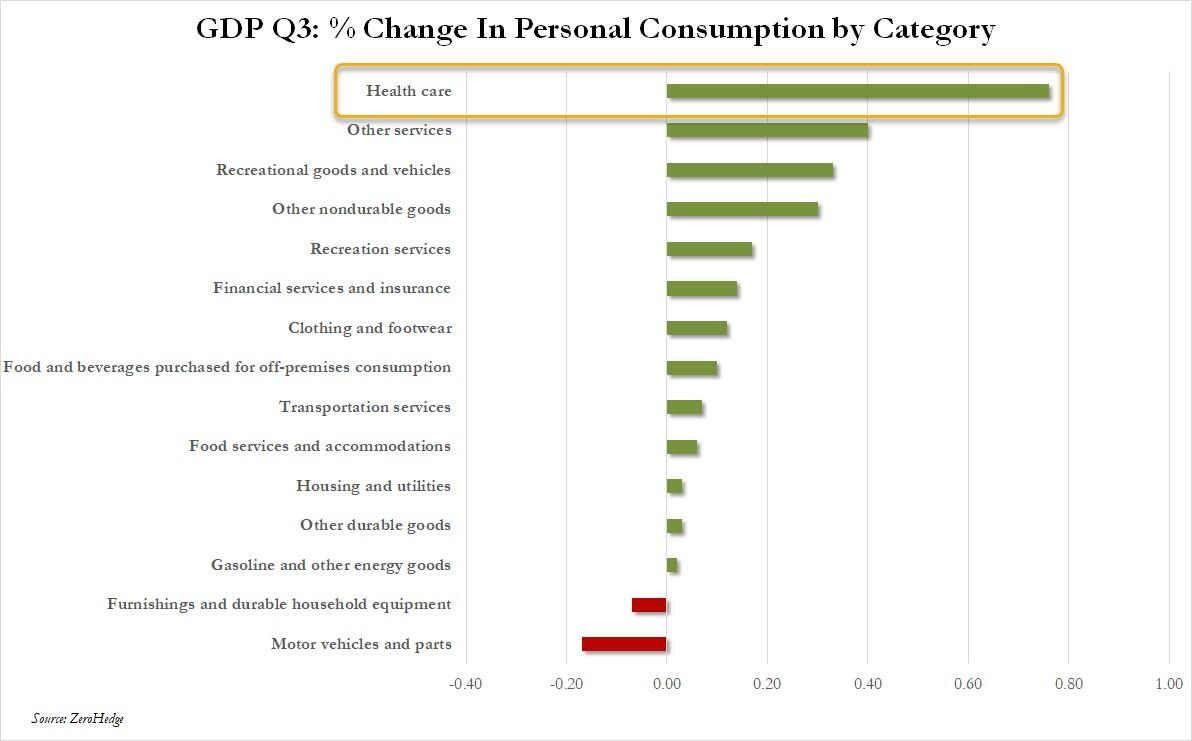 But hidden in that report is the fact that the largest contributing factor to this GDP growth was health care spending.