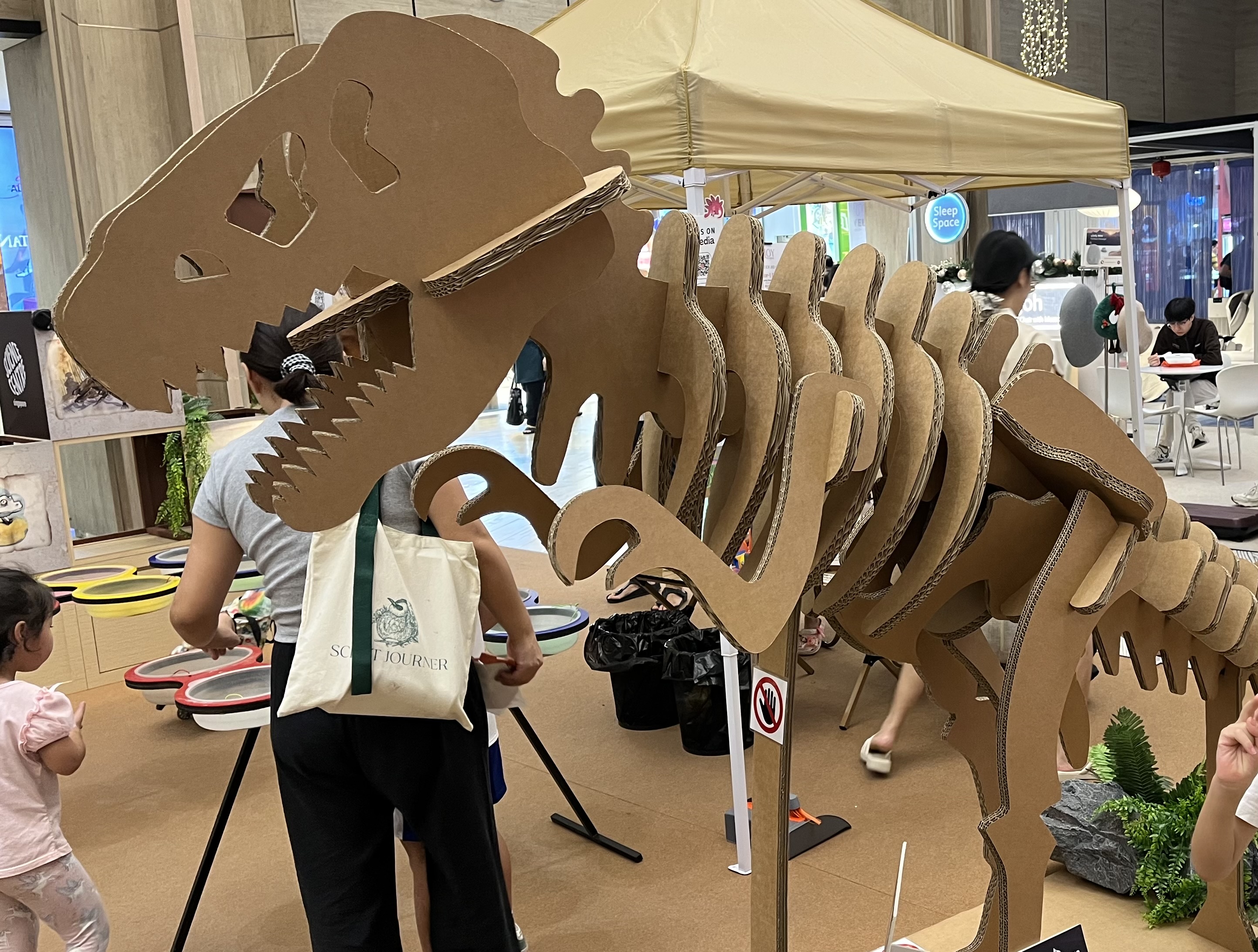 Take for instance how the Science Centre set up a dinosaur exhibit at Northpoint, the mall nearest my house. The personnel used a small area, but I thought they did a fantastic job at garnering interest with the use of cardboard dinosaur sculptures: