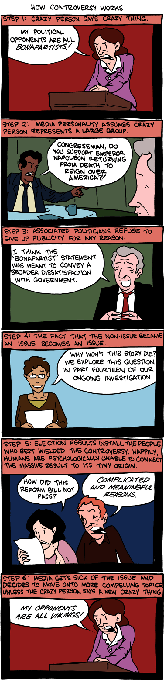You could use it to distract a mob while you did something productive and controversial. Otherwise, controversy of the nonsense kind seems like a one-way valve toward conservatism.