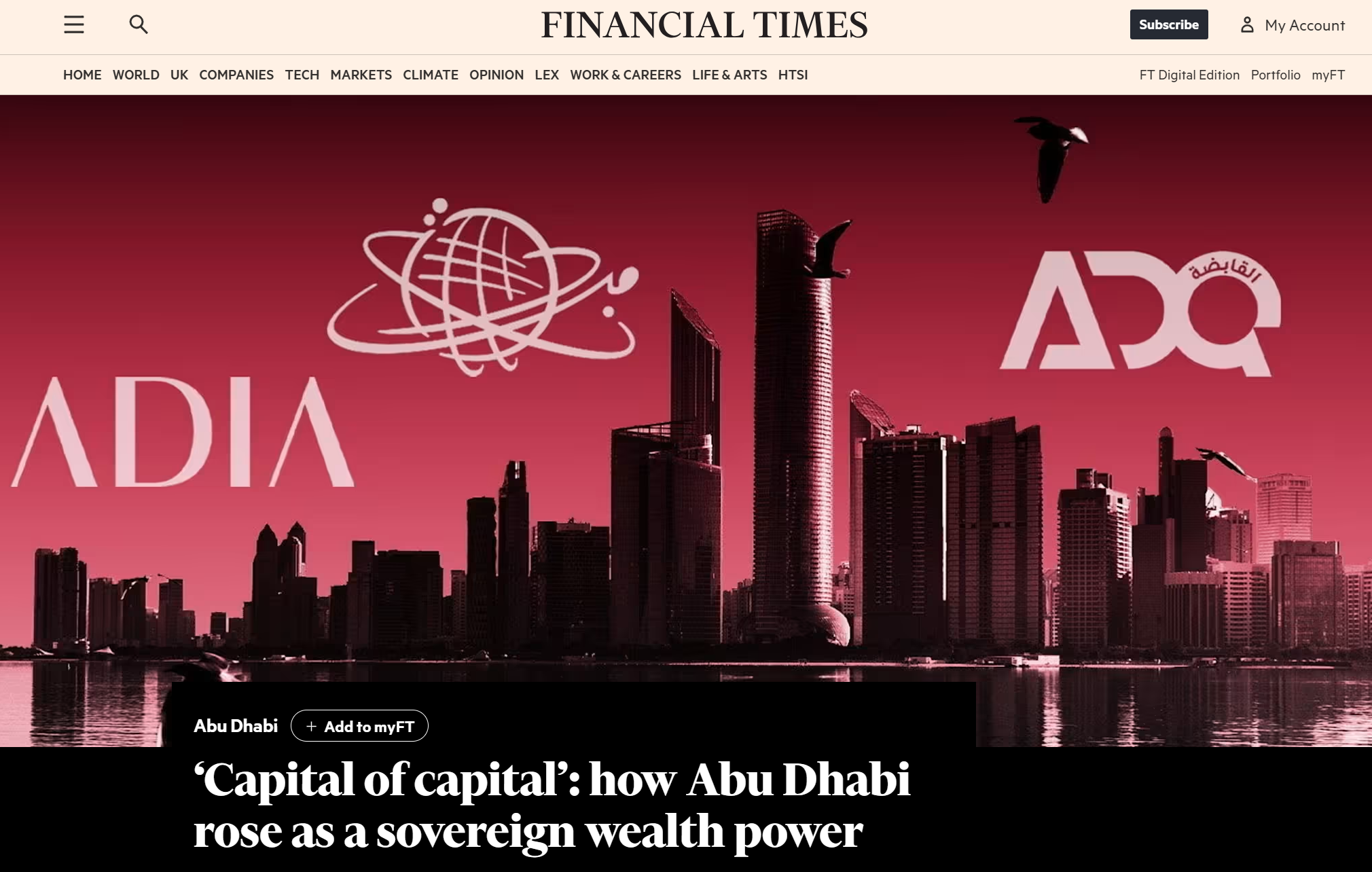 Abu Dhabi was a global backwater when it started exporting oil six decades ago, with a population of 30,000, few paved roads and clusters of buildings spilling into the desert sands. Today the gleaming emirate has a population of 4mn largely made up of expatriates and boasts among the highest concentrations of sovereign wealth in the world, having channelled its petrodollars into international investment and domestic development.