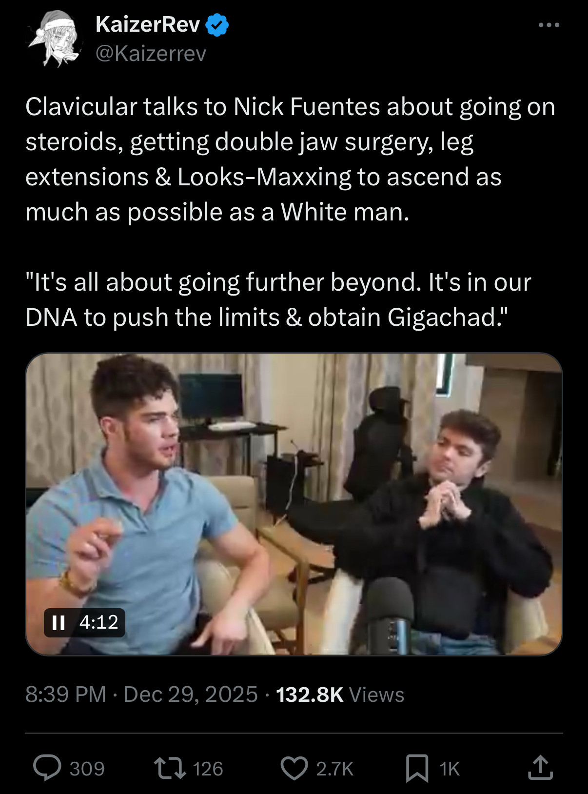 When someone says “it’s in our DNA” while explicitly tying it to “ascending as a White man,” that’s not just self-improvement talk. It’s a claim that biology decides who should rise: ‘we’ have an inherited essence, and the hierarchy is natural. That’s the tell.