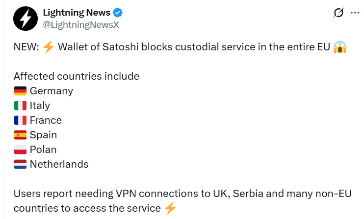 This is a good thing. But people are too dumb to realize that is a smartt maneuver of WoS to push them into a bigger trap: the so called "self-custodial" WoS that runs on Spark crap (not LN) and soon they will be hammered by a full KYC.