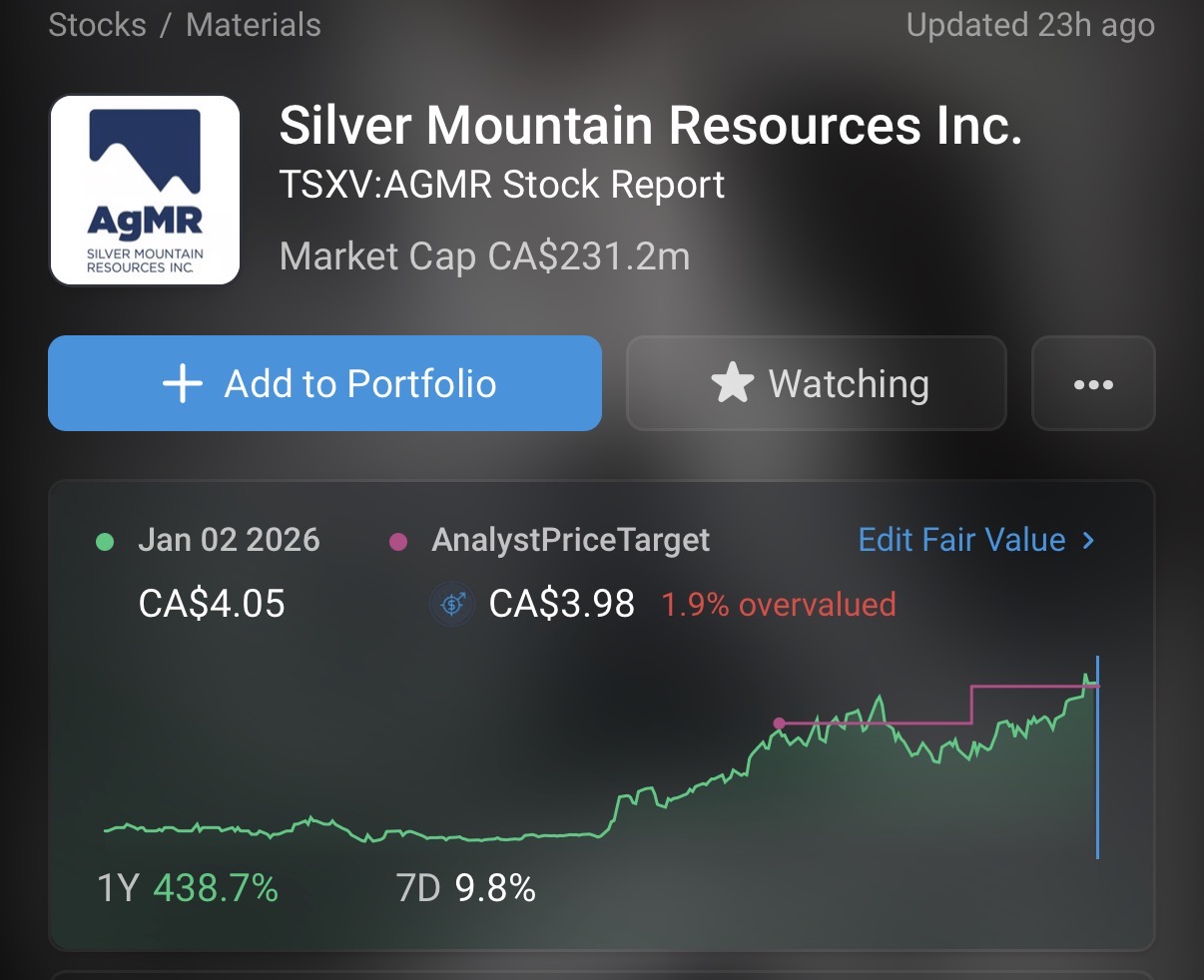 I learned about this company watching Mark Moss videos on YouTube. He was bullish on silver and mentioned this company as being a possible investment. I threw it on a watch list but never purchased shares. With this silver run it is quite possible Mark Moss was correct.