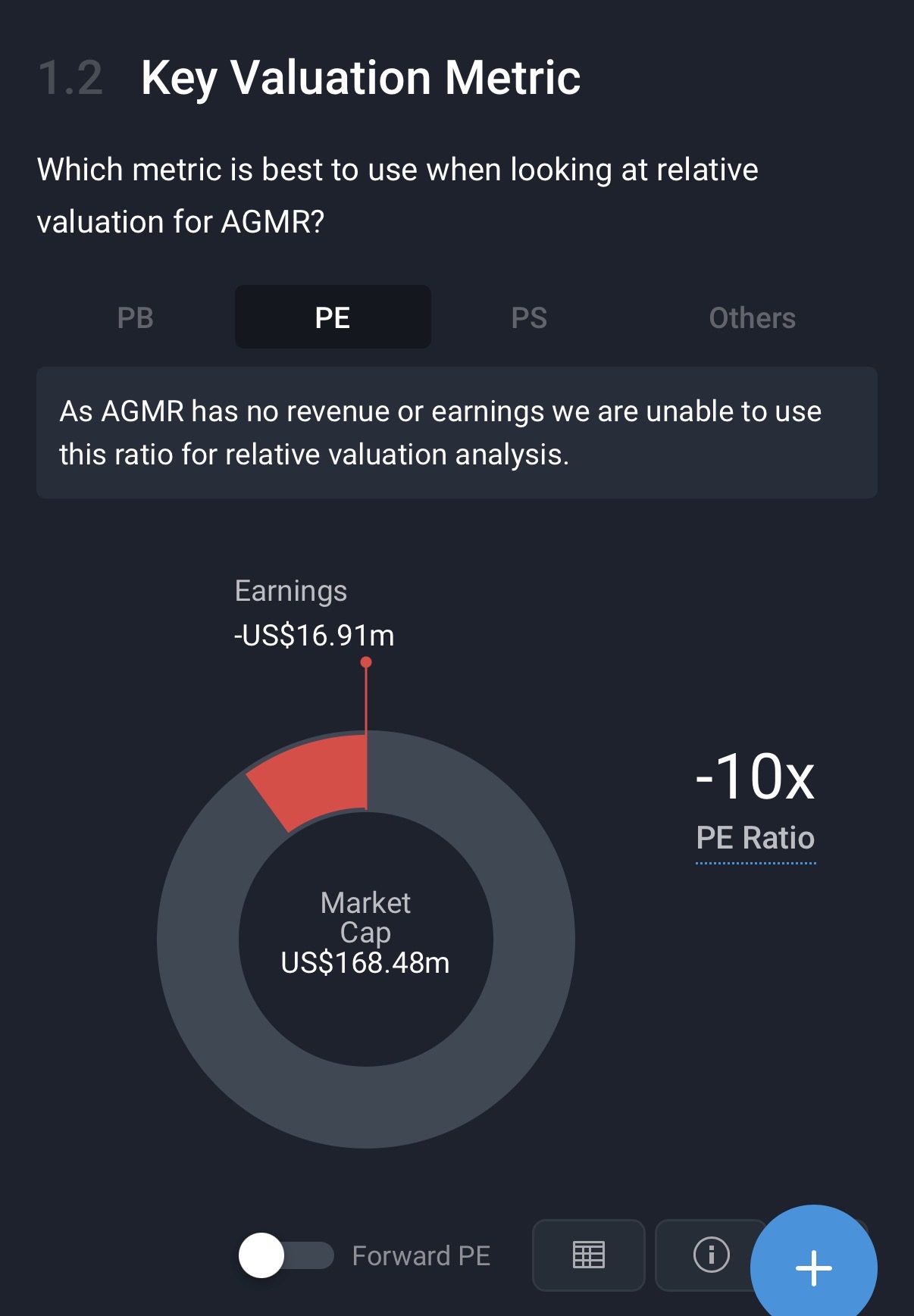 At a -10 PE investors are paying $10 to access $1 of losses. As PE is a lagging metric of a company’s value it is quite possible this can flip positive with the current silver bull run.