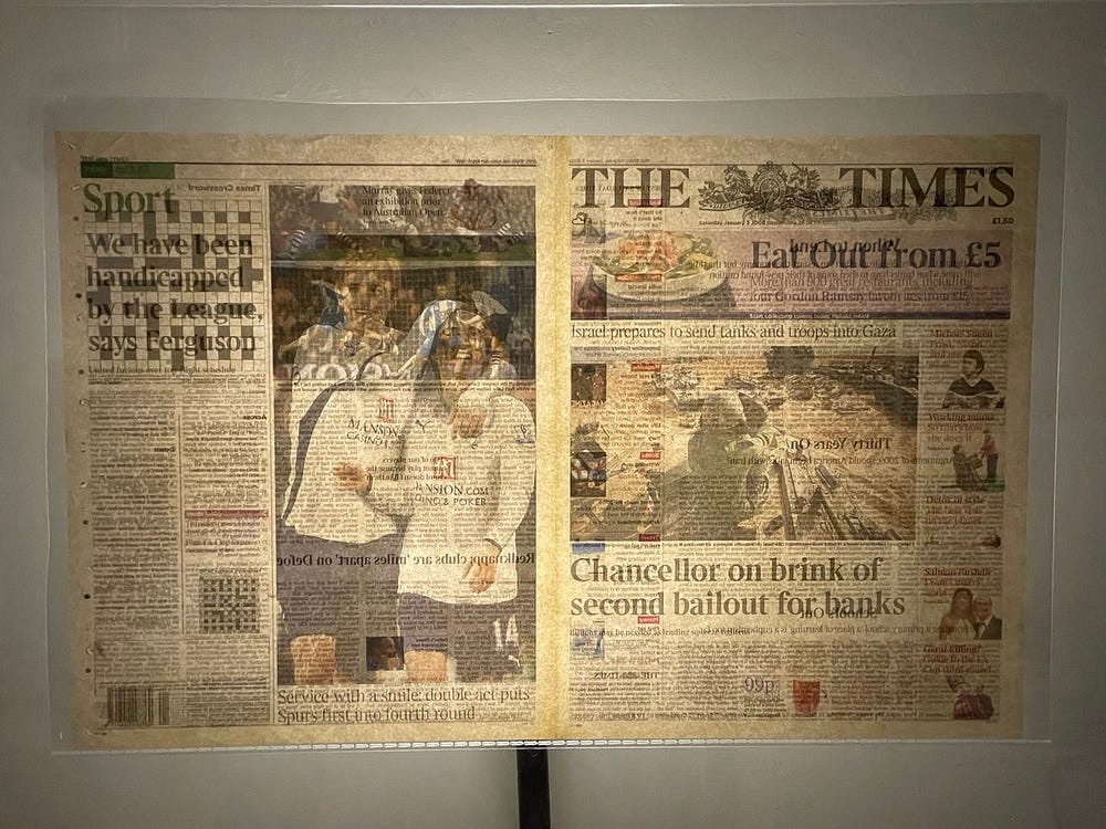This post documents a newly discovered, complete copy of one of the most historically significant newspapers of the 21st century. On January 3, 2009 the first block of the Bitcoin block chain was minted by Satoshi Nakamoto. Its founder placed an important notation within it, indicating the intent behind what he had just created.