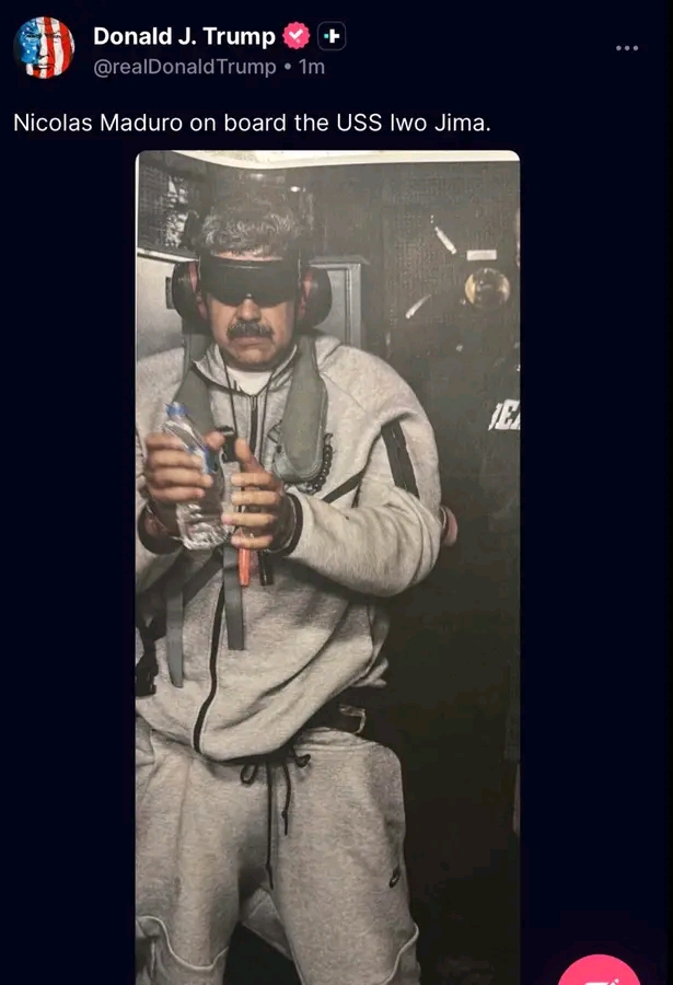 Trump posts the first picture of Nicolas Maduro after being captured