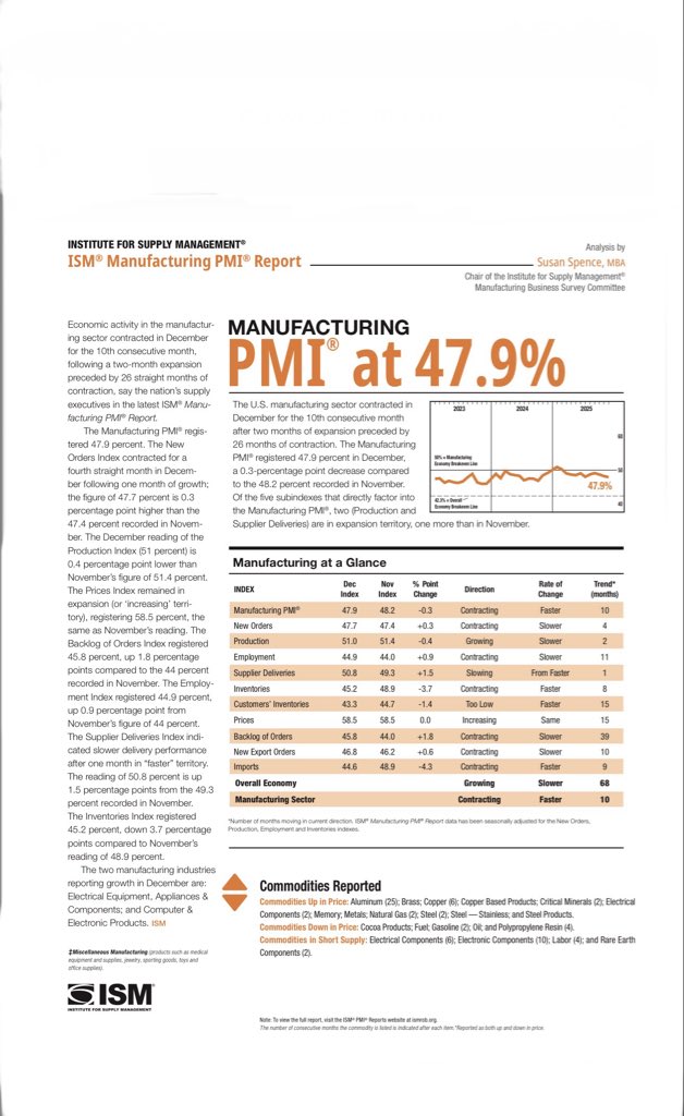 PMI at 47.9 is soft, but not crashing. And yes, ISM reminds us that anything above 42.3 has historically lined up with overall GDP growth. That framing is technically true. But if you slow down and read this like someone who lives inside cash flows, inventories, and payroll decisions, the story underneath feels a lot more fragile.
