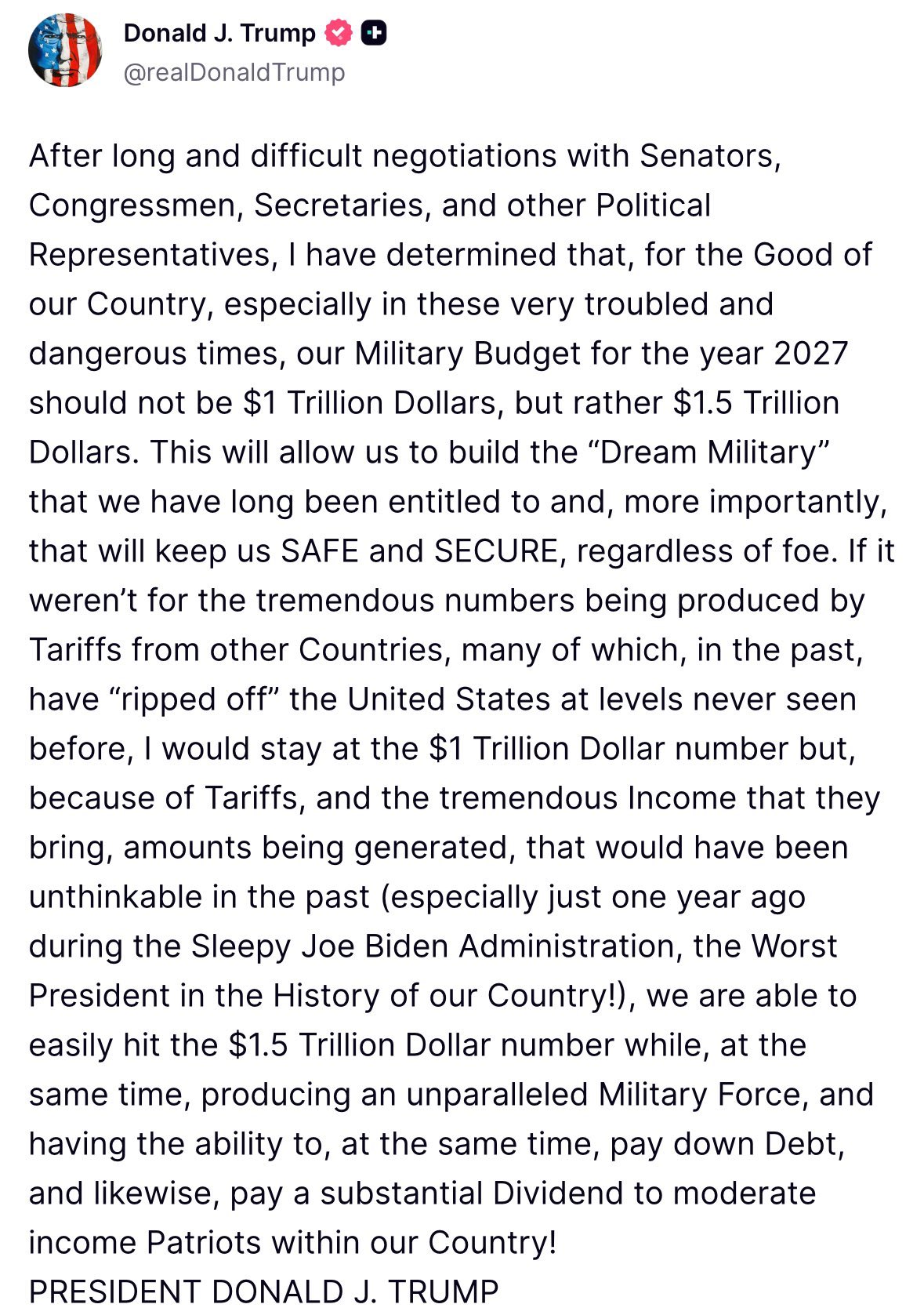 We are going to spend an external $500 billy on the military...