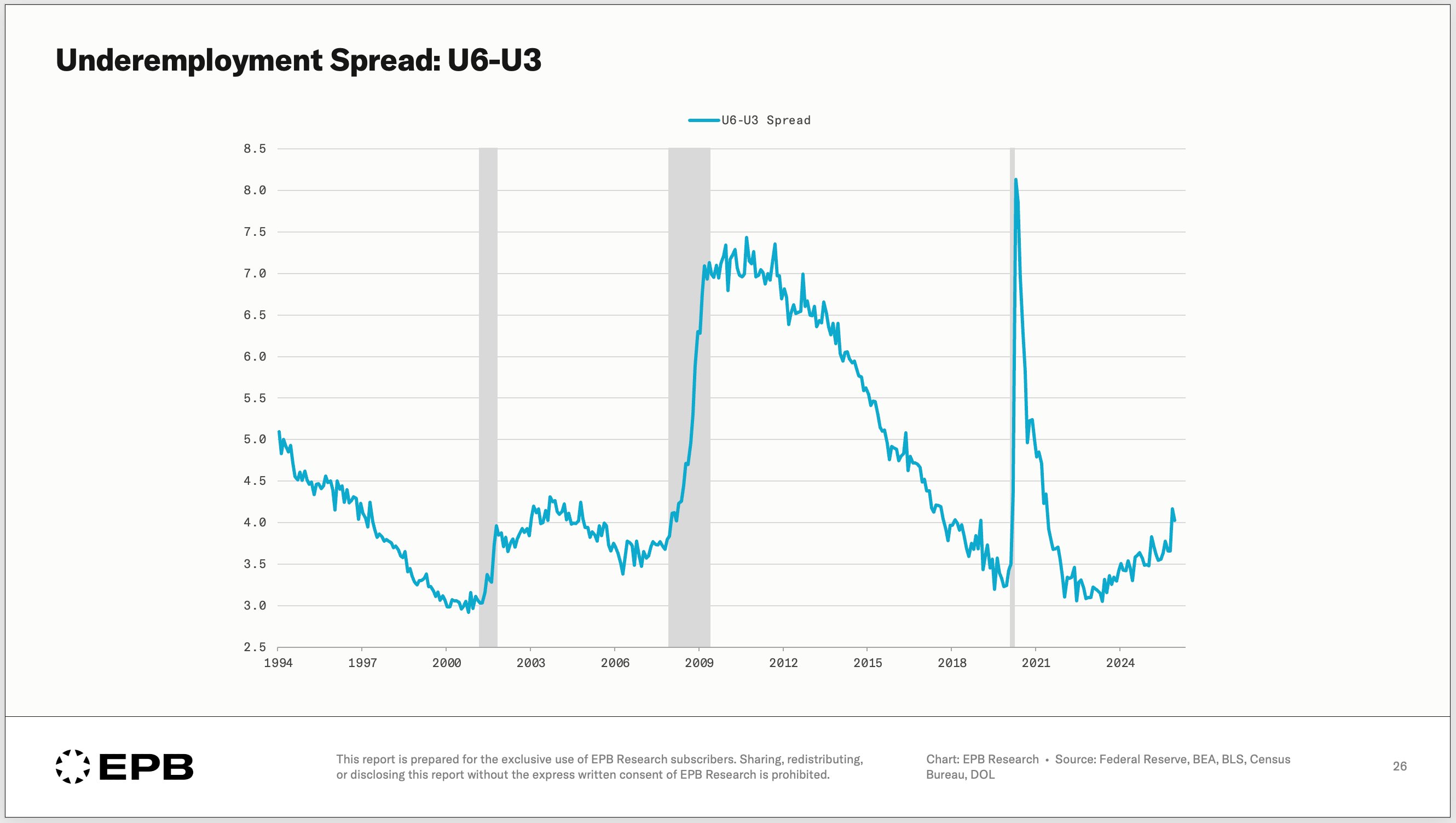 The gap between the broader U6 (underemployment) and U3 (headline) measures is a reliable indicator because it signals the inflection points before they hit the news... are companies are preparing to hire or are they cycling toward layoffs?