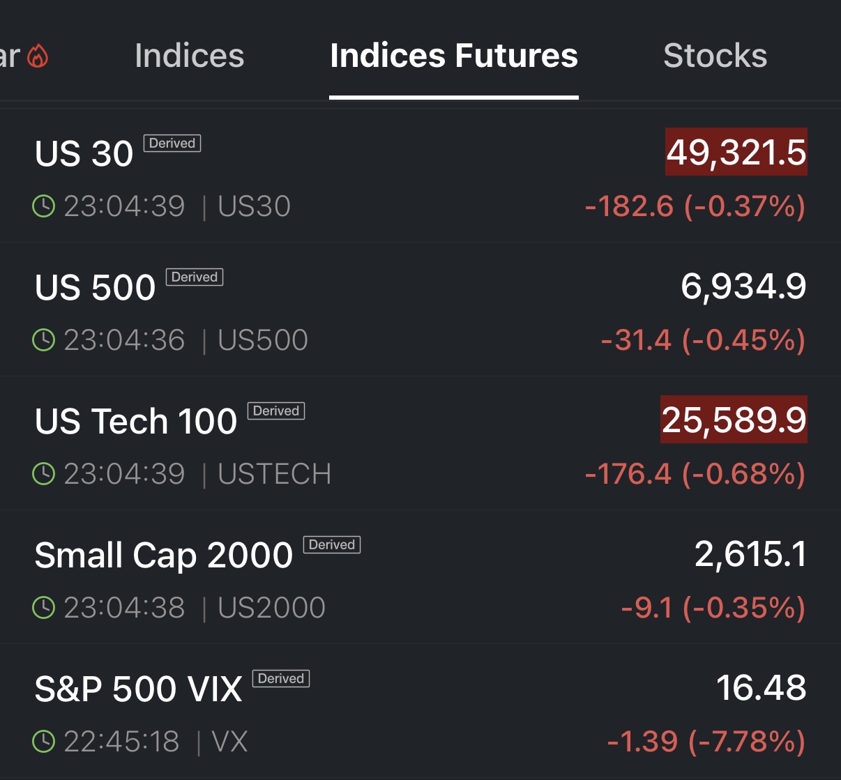 - US Stock Markets in the Red: S&P 500 futures (-0.45%) and Nasdaq (-0.68%).