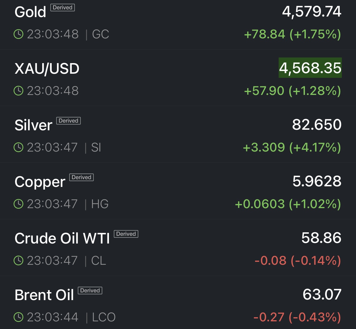 - Safe Haven Assets on the Rise: Gold (+1.75%) and Silver (+4.17%) surge. Bitcoin (+0.87%) and Solana (+4.05%) also rise.