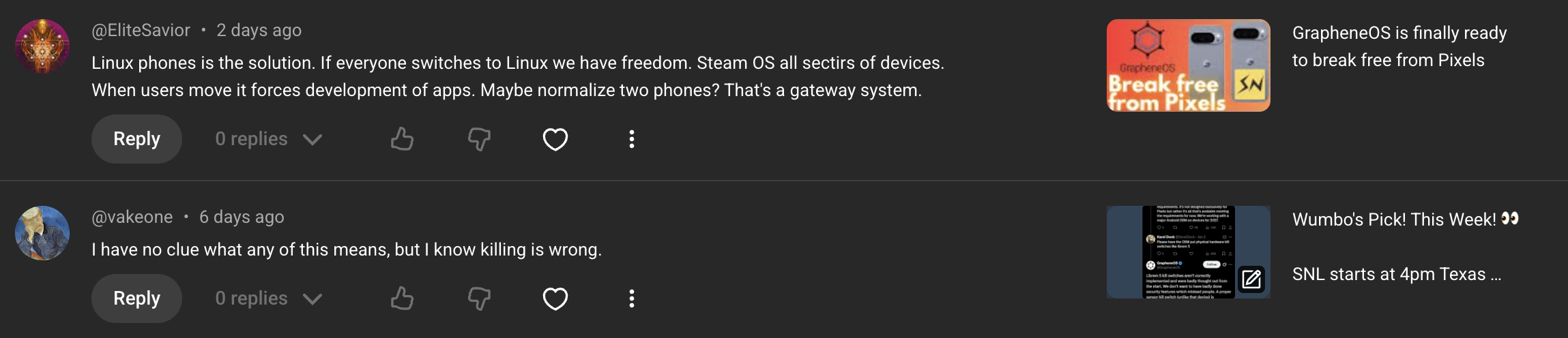 Watch on YouTube: GrapheneOS confirms physical 'sensor kill switch' on New Phone