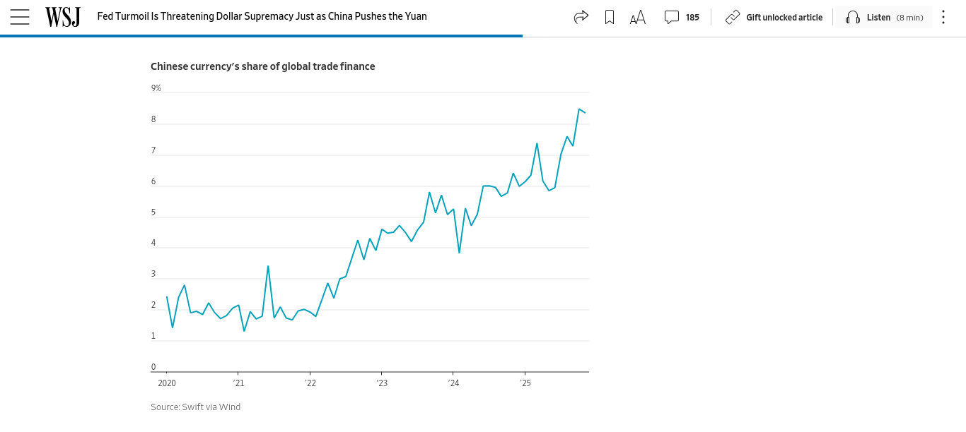 The criminal investigation into Fed Chair Jerome Powell is being viewed globally as an effort by the Trump administration to wrest control of monetary policy from the central bank. That, according to some economists, risks damaging investor confidence in the U.S. financial system and the dollar, just as China is expanding use of its own currency around the world.