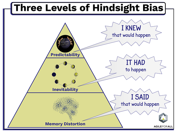 Hindsight bias is a dangerous one and a tricky one to kick. You experience it because you try to predict rather than react. The less you dilute the future with your own ideas, the more obvious the future becomes.
