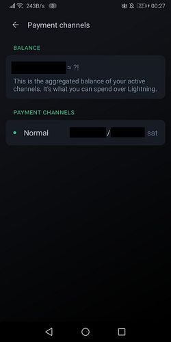 As expected, "Payment channels" only shows a single channel now. There seems to be a minor bug regarding fiat currency however. I only see "?! EUR" where the amount in EUR should be shown.