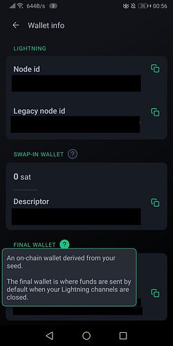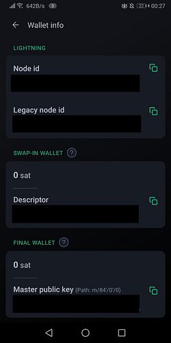 Wallet info: There is a swap-in wallet using descriptors and a final wallet using zpub now! I think this wasn't shown to the user before.