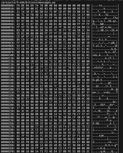 In the course of this learning experience, I had some fun in developing a simple python app which takes as input a tx hash and returns the byte message in hexdump format (the same format used to represent the Genesis block)