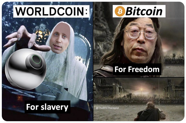 Worldcoin, the eyeball-scanning, dystopian global ID system from the same guy that brought you ChatGPT, has launched, merely underscoring why Bitcoin is so crucial. The project promises a cryptographically secured 'proof-of-personhood' by introducing proprietary hardware reminiscent of the palantir Saruman use to speak with Sauron. They call this the 'Orb' – a silver sphere roughly the size of a bowling ball – that performs iris scans to confirm a user's humanity. Even Vitalik Buterin has commented that the project might be excessively centralized. Critics have also noted that the team was unprepared for people selling their credentials, which undermines the entire purpose of the project. Meanwhile, blockchain security firm PeckShield has detected that a fraudulent Worldcoin token has already executed a rug pull.
