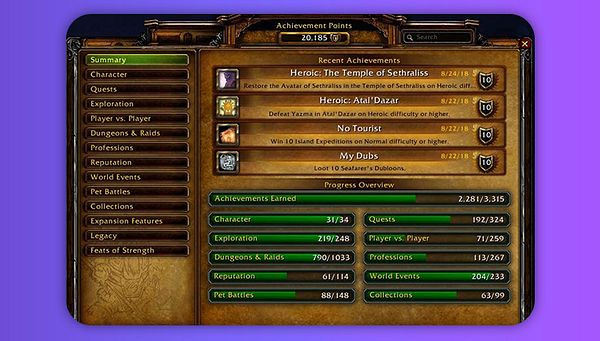 The basics! This is where you'd start, by adding an achievement list that users can check out and see how they can acquire them. Each achievement would have its title, details on how to achieve it, a progress bar, an icon, and other elements/info.