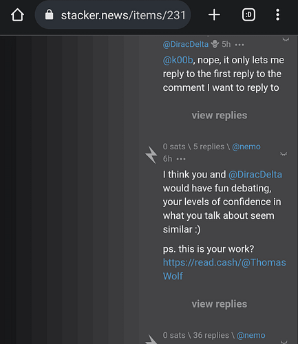 Would you mind linking to the comment you cannot reply to? (So I can try it and see what's wrong.)