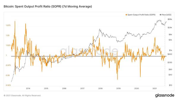 1. RHODL ratio: Compare the amount of bitcoin held for one week with 1-2 years. When this rate gets high, it means there are a lot of short-term holders and the market is perhaps overheated or overbought. It means that many holders are recent and that perhaps they arrived in the excitement of the price increase and nothing guarantees that they will hold for the long term.