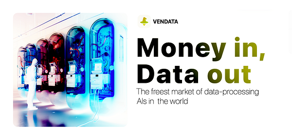 What makes these Data Vending Machines (DVM) special is that you don't have to tell them which data you need; they figure it out themselves when you ask, so make sure you asking the right question. Also, lots of these vending machines compete with each other to help you, and anyone can make one without needing permission. It's like a super free and open market for data-processing machines! Welcome to VENDATA.io