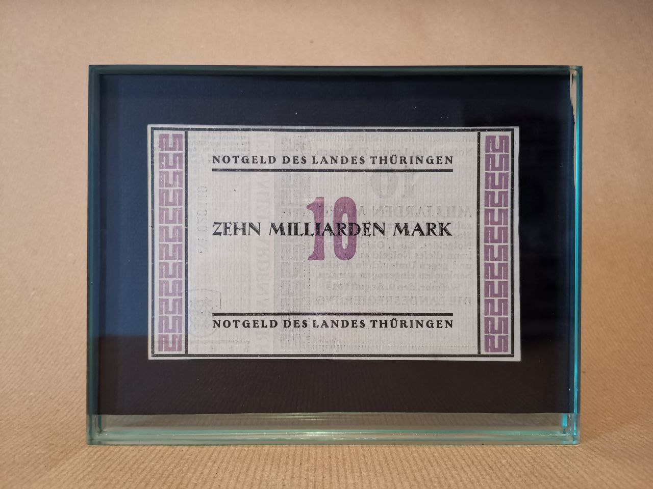 But we still think that the auctioned bill belongs to Bauhaus school. And this is why, first and foremost it was Notgeld issued by Thuringia, which is the state where city of Weimar situates. On the photos from the Bauhaus museum you can see dates 9 August 1923 while 10B bill has 1 October 1923. In a couple of months local authorities needed to issue bills of 200 times larger denomination. The design of the face side of the bill is simple functional and let us know that at the moment of issue prices were normally count in billions. While the flip-side looks overloaded and dark. We have an idea why it was made this way. All ornaments and overprints likely served for making counterfeit of the bills harder. The bill simply has no protection mechanism because the production must be cheap.