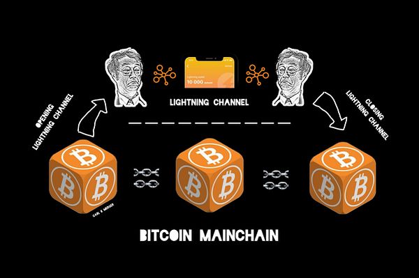 So unlike our bar tab, a Lightning channel is not based on credit. All participants of the Lightning channel can close the channel and get back the liquidity provided. Closing a channel means that all transactions that took place while the channel was open are combined and closed with a single transaction on the Bitcoin base layer.