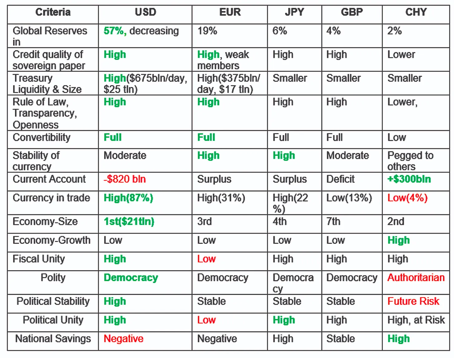 The list of requirements for a reserve currency are as follows: