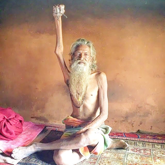 Amar Bharati stuck his arm up over 45 years ago as a symbol of peace, and has never lowered it since (is unable to at this point :o )
