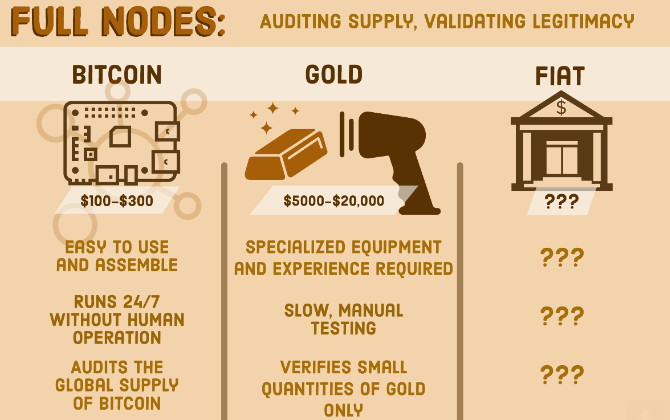 Running your own node also helps you eliminate the trust needed for other nodes to remain honest. Though most of them remain true, by running transactions through your own full node, you are essentially becoming your own bank. That's a pretty cool feature that isn't really possible with fiat, gold, or anything else that can be used as money.