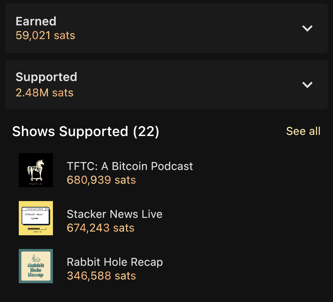 I should start using fountain. Its just that I listen to pods offline so wouldn't be able to stream sats