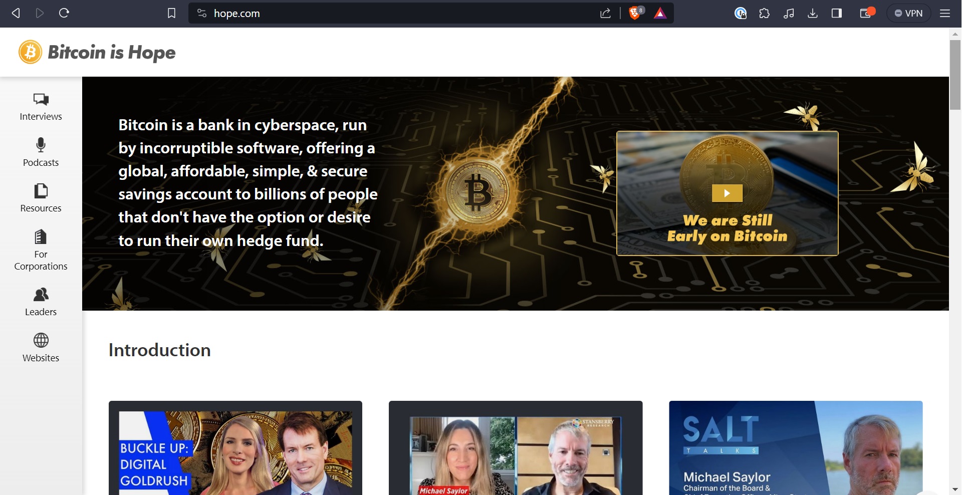 If we pay someone before they’ve demonstrated proof of work, we can only hope they will fulfill their word and do the work they’ve just been paid to do. In that regard, Bitcoin eliminates the need for hope, because, again, we know the recipient of newly minted units of Bitcoin has provably done work for the network. What eliminates the need for hope? Hope eternal? Is that why Michael Saylor dedicated his domain name www.hope.com to Bitcoin? Before MicroStrategy announced their adoption of Bitcoin as a treasury reserve asset, I was asked in 2020 “What gives you hope?” and without batting an eye, I said “Bitcoin”. Saylor and I were very much on the same wavelength there. When one understands Bitcoin’s design, what Bitcoin stands to disrupt, and therefore, how incentivized the disrupted are to stop Bitcoin, and then considers that Bitcoin continues, tick tock, next block, day in, day out, Bitcoin’s resilience and anti-fragility becomes undeniable. Bitcoin is good for Earth’s occupants, good for Earth’s energy grid, and is anti-fragile. Bitcoin is hope.