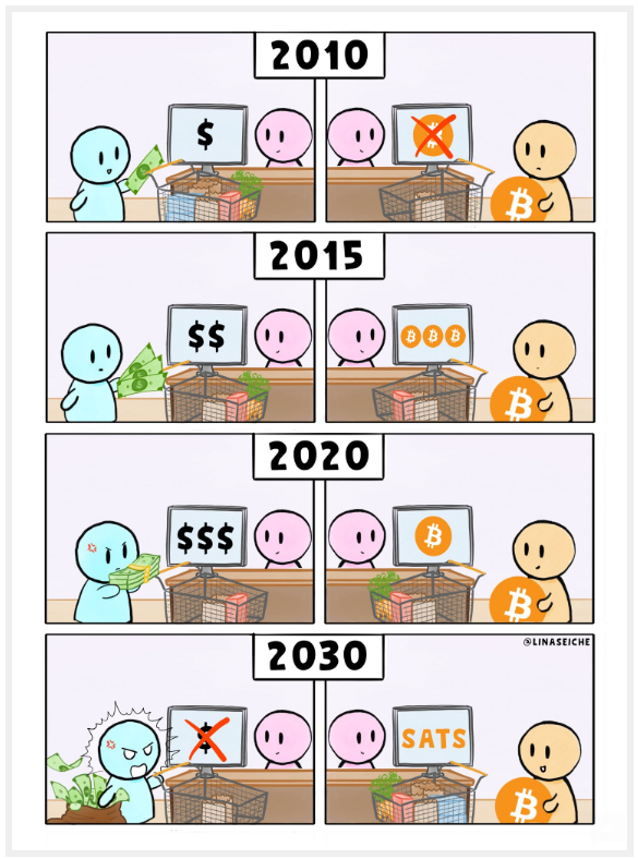 Instead, the path to global adoption will look more like individuals choosing self-sovereign stores of wealth. Keep in mind that because Bitcoin is permissionless, taking the right privacy measures means you can use and hold bitcoin even where outlawed.