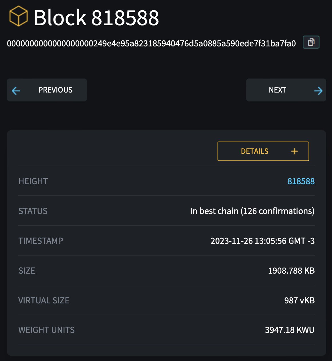 Block 818588 reward worth 6.25 $BTC ($230,000)