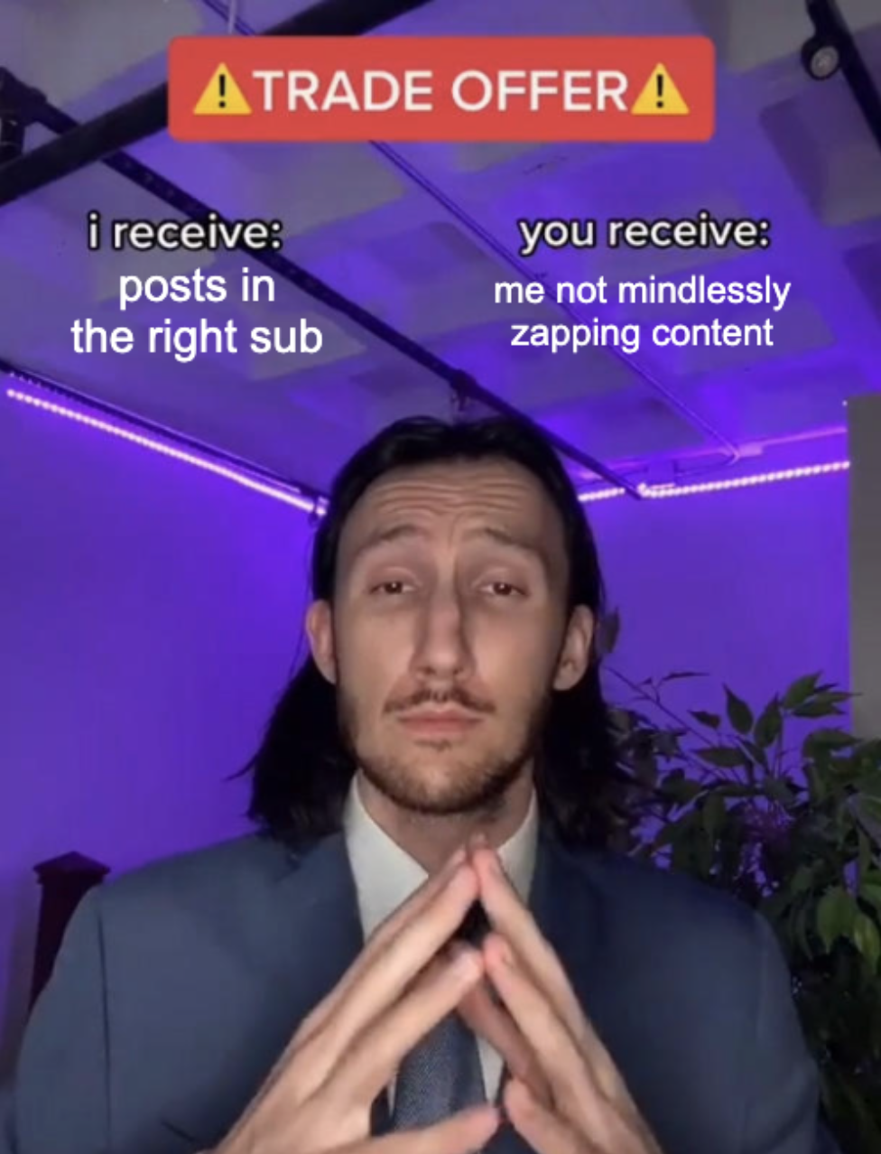 Zap the content that gives you value! Entertainment, or you learn something new, etc.