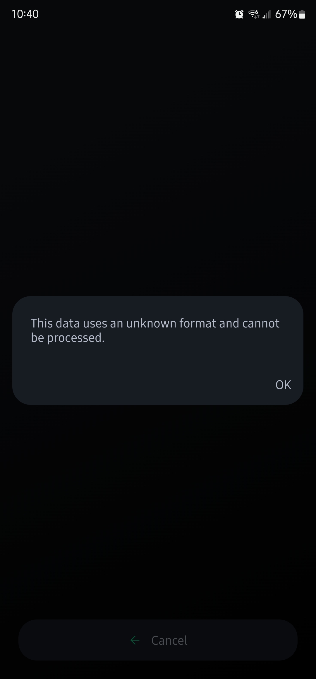 hey @k00b, i started getting an error today when i log in with lightning. i can obviously still successfully log in, but when i go to paste the data in phoenix i get the message "this data uses an unknown format and cannot be processed." should i be worried? i don't currently have a secondary log in method